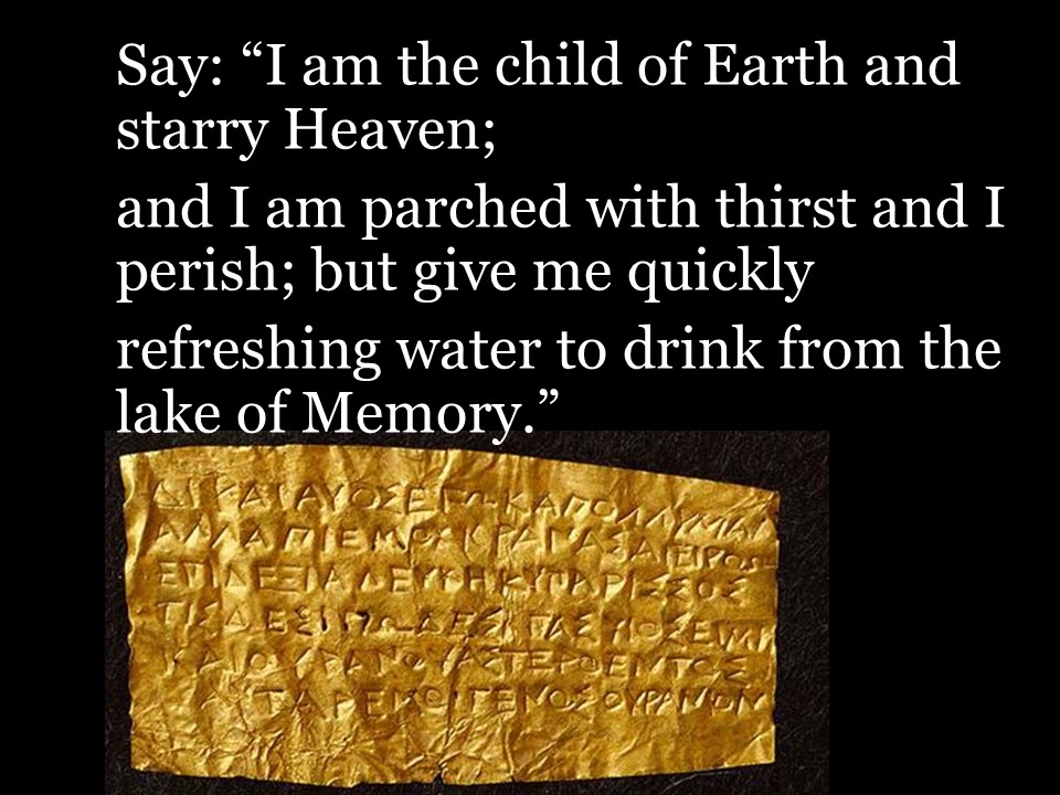 Bradbury’s universal translator relieves many worries, given that as the (relatively) recent discovery of the Derveni Papyrus seems to suggest, compounding older gold tablets as vademecum for the dead, a Todtenpass,[7] or passport to hell, as in addition to recommended procedure — avoid the first fountain — there seems to be a specific script one needs must pronounce, word for word in the underworld: should it transpire that efficacy might depend on words enunciated, clearly as Nietzsche emphasizes they would have to be — this after all being what he meant by ‘the spirit of music’ — said in Greek. And there we have a chance to get to the cinematic prelife of Bill and Ted on our way to ‘rap’[8] or hip hop relevance.[9]