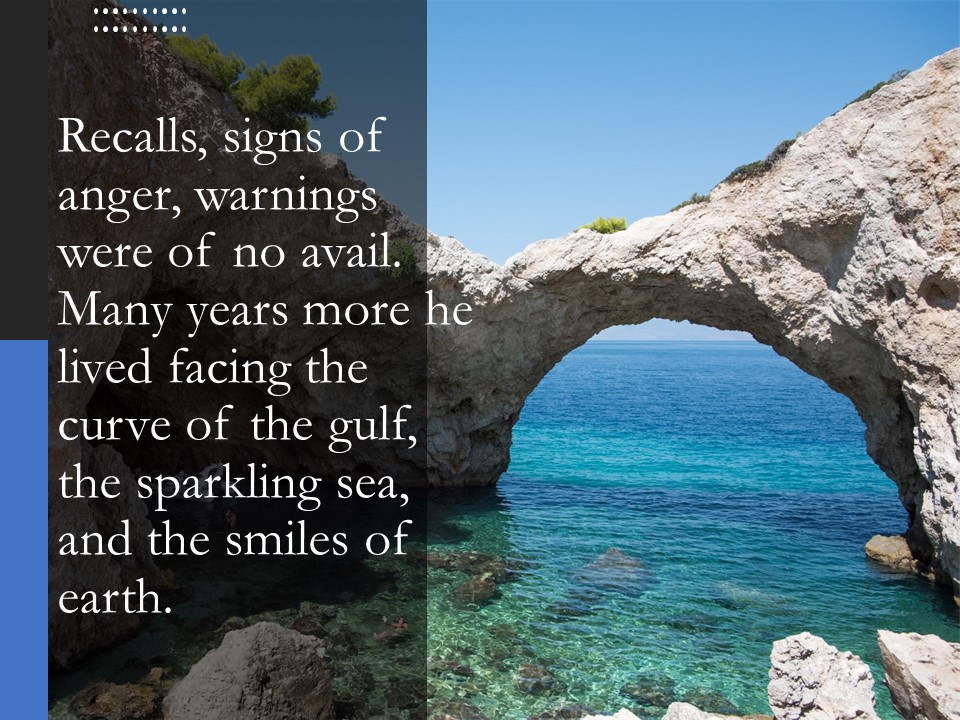 Cavalier as he was toward death, the mortal Sisyphus, as he lay dying, instructed his wife to dispense with the rites of the dead and to cast his body into the public square.  Which end of life directive she duly followed. When, upon thus finding himself in the underworld, absent the rites due the dead, Camus reports that Sisyphus was “annoyed by an obedience so contrary to human love.” And good persuader as Sisyphus was, he was able to talk the god of the Underworld into allowing him to return to the Overworld, the world above, the world of the living, ostensibly to reprimand his wife (Pluto/Hades who had his own problems with his own wife was predictably receptive to such an incentive). But immediately, once Sisyphus was returned to the land of the living he lost any thought of revenge and simply lived, refusing, as long as ever he could, to return.